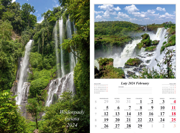 Kalendarz 2024 Ścienny wieloplanszowy Wodospady