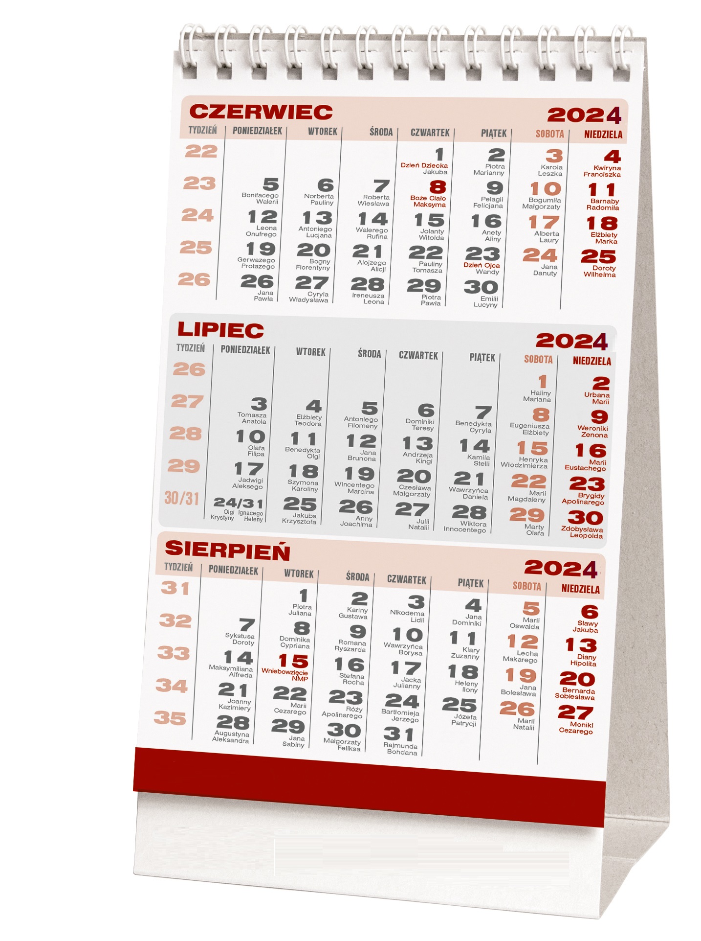 Kalendarz 2024 stojący trójdzielny