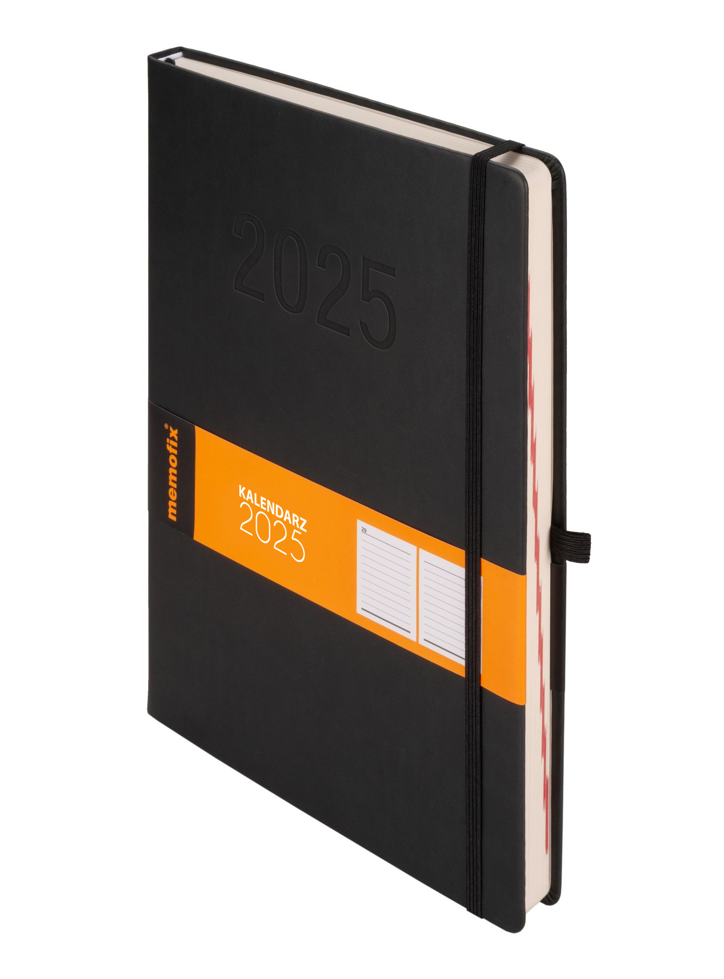 Kolekcja: Memofix Format: A4 Wymiary okładki: 295x210 mm Układ: dzień na stronie Ilość stron: 376 Oprawa: twarda Materiał: skóra ekologiczna Gramatura papieru: 70g Kolor papieru: chamoise Dodatki: plan roczny, skorowidz adresowy, notatki Pionowa gumka zamykająca: w kolorze okładki Wstążka: w kolorze okładki Gumka na długopis: w kolorze okładki Zaokrąglone rogi: tak Wyklejka: chamoise Koperta: tak Dostępne kolory: czarny, czerwony, granatowy, różowy