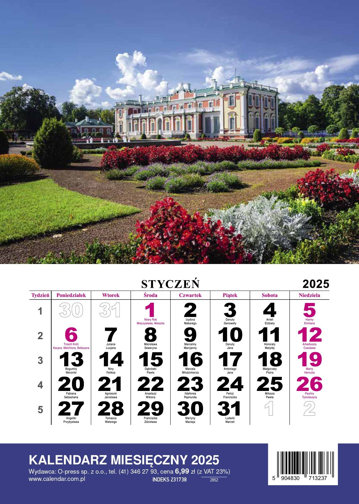 Opis produktuZasady bezpieczeństwaKalendarzem Miesięczny jest idealnym rozwiązaniem dla tych, którzy cenią sobie klarowność i przejrzystość w organizacji czasu. Każda strona tego kalendarza poświęcona jest jednemu miesiącu, zapewniając obszerny widok na wszystkie planowane zadania, wydarzenia i spotkania. przesuwane okienko, umożliwia intuicyjne zaznaczanie i śledzenie poszczególnych dni, co czyni go wyjątkowo praktycznym w codziennym użyciu. Kalendarz jest wyposażony w wytrzymałą dziurkę, która umożliwia proste i bezpieczne zawieszenie go na ścianie, gwarantując, że będzie on zawsze pod ręką i w zasięgu wzroku. Idealnie sprawdzi się zarówno w domowym gabinecie, jak i w dynamicznym środowisku biurowym, gdzie szybki dostęp do informacji o dacie jest niezbędny. x