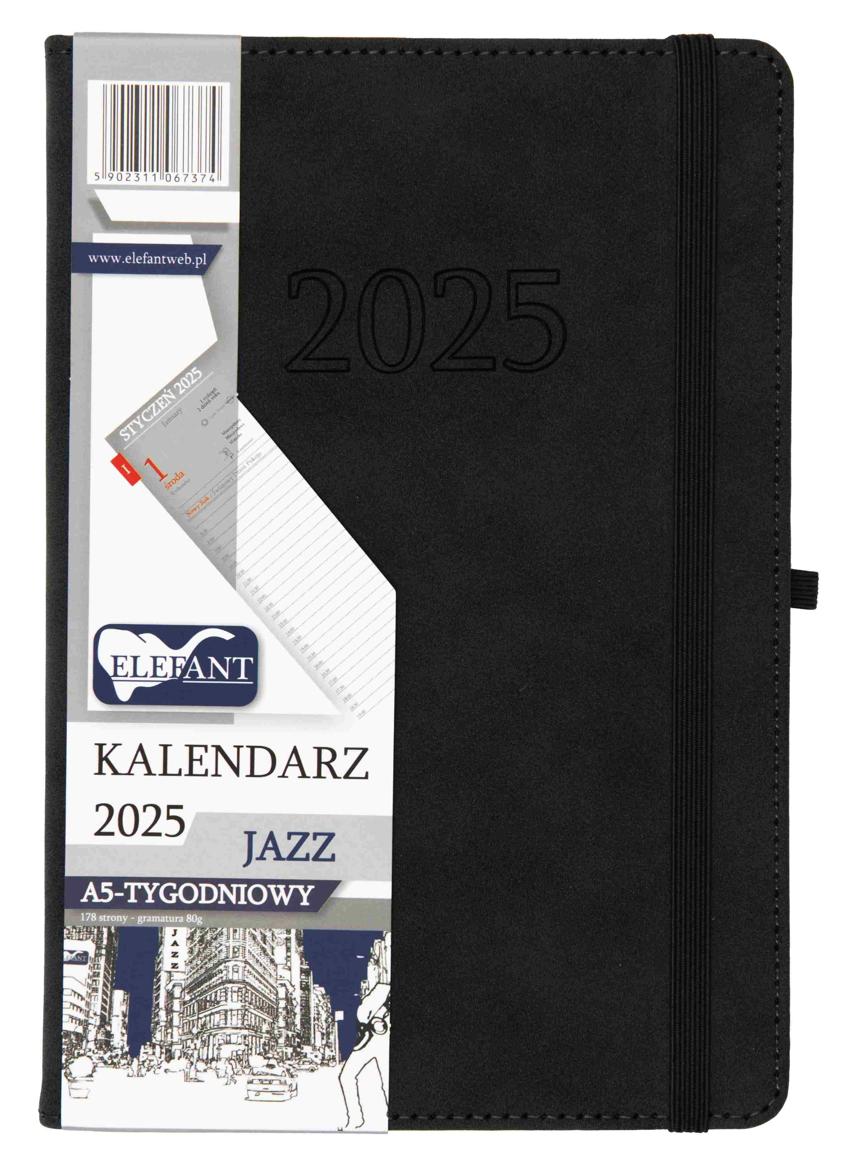 Kalendarz 2025 A5 tygodniowy Jazz czarny