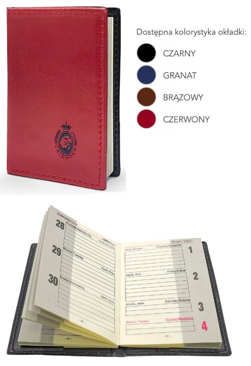 Opis produktuZasady bezpieczeństwaKalendarz Kieszonkowy Lira A7 to niezastąpiony drobiazg, który zmieści się nawet w najmniejszej kieszeni. Ten mały, ale niezwykle praktyczny kalendarz to esencja funkcjonalności, umożliwiając Ci organizację dnia bez względu na to, gdzie jesteś. Z łatwością zapiszesz w nim swoje najważniejsze spotkania i zadania, a jego inteligentny układ pozwoli Ci na szybki dostęp do każdej potrzebnej informacji. Mimo swoich niewielkich rozmiarów, ten kalendarz jest wytrzymały - jego twarda okładka wytrzyma codzienne użytkowanie i ochrania Twoje notatki. Prosty i elegancki design sprawia, że jest on stylowym dodatkiem do każdego zestawu, podkreślając Twój profesjonalizm i zmysł organizacji. To doskonałe rozwiązanie dla tych, którzy pragną mieć swój czas zawsze pod kontrolą, niezależnie od okoliczności.