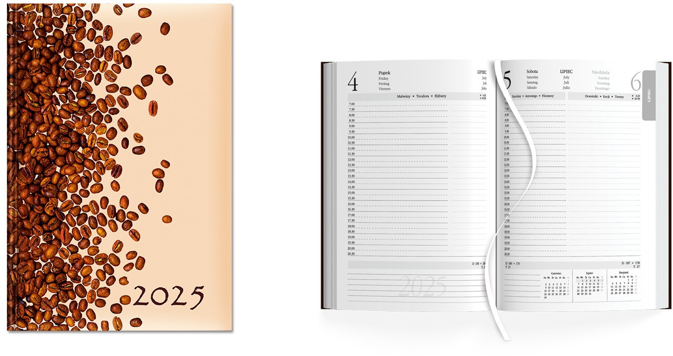 Kalendarz 2025 książkowy B6 dzienny Kawa