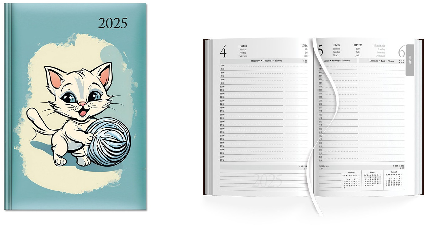 Kalendarz 2025 książkowy B6 dzienny Kotek