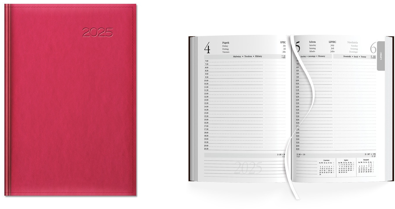 Kalendarz 2025 książkowy B6 dzienny Różowy