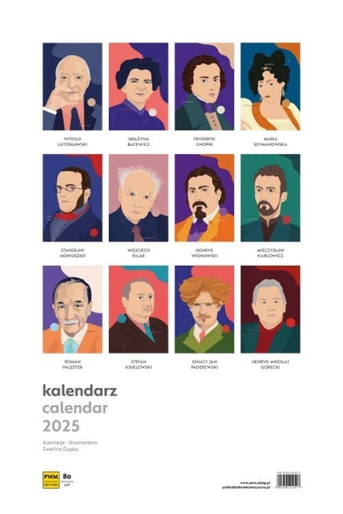 Opis produktuZasady bezpieczeństwaKalendarz ścienny PWM na 2025 rok to coś więcej niż codzienna organizacja to sposób na wprowadzenie sztuki i inspiracji do Twojego życia. Każdą kartę miesiąca zdobi portret słynnego kompozytora, stworzonego przez Ewelinę Gąskę w ramach serii "Małe Monografie". Dzięki subtelnemu połączeniu muzyki klasycznej i wyjątkowych grafik kalendarz nie tylko pomoże Ci zaplanować dzień, ale również codziennie przypomni o pięknie muzyki i sztuki, nadając wnętrzu unikalny charakter. x