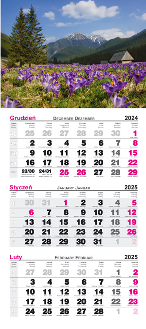 Kalendarz 2025 ścienny trójdzielny Krokusy