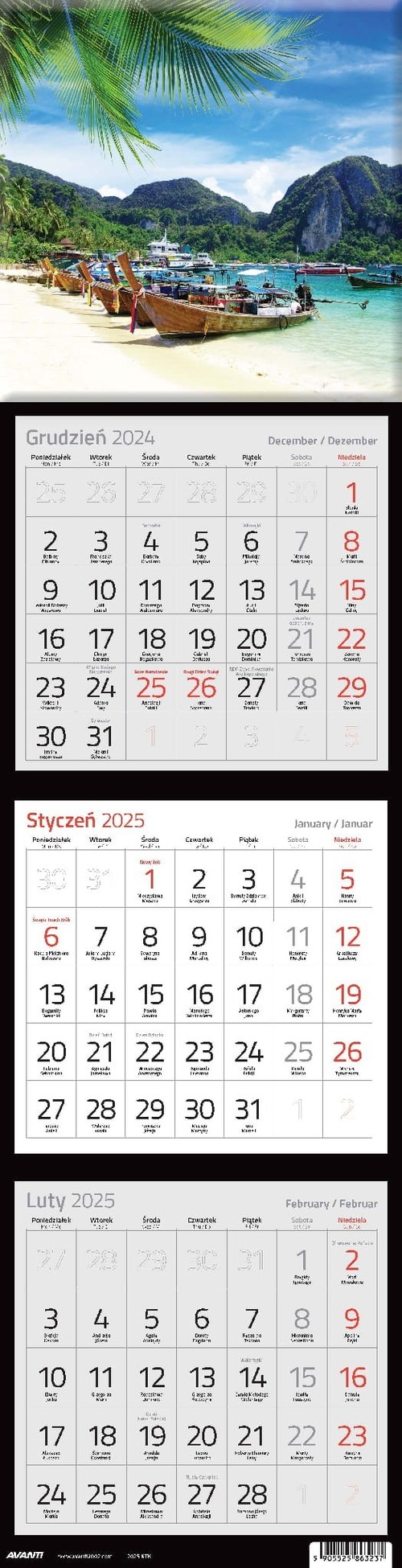 Kalendarz 2025 trójdzielny kwadratowy MIX