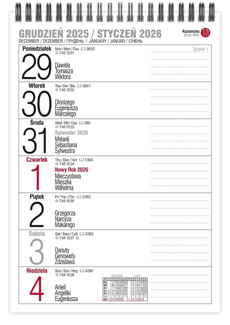 Kalendarz 2026 Biurkowy A5 TYGODNIOWY PIONOWY.
