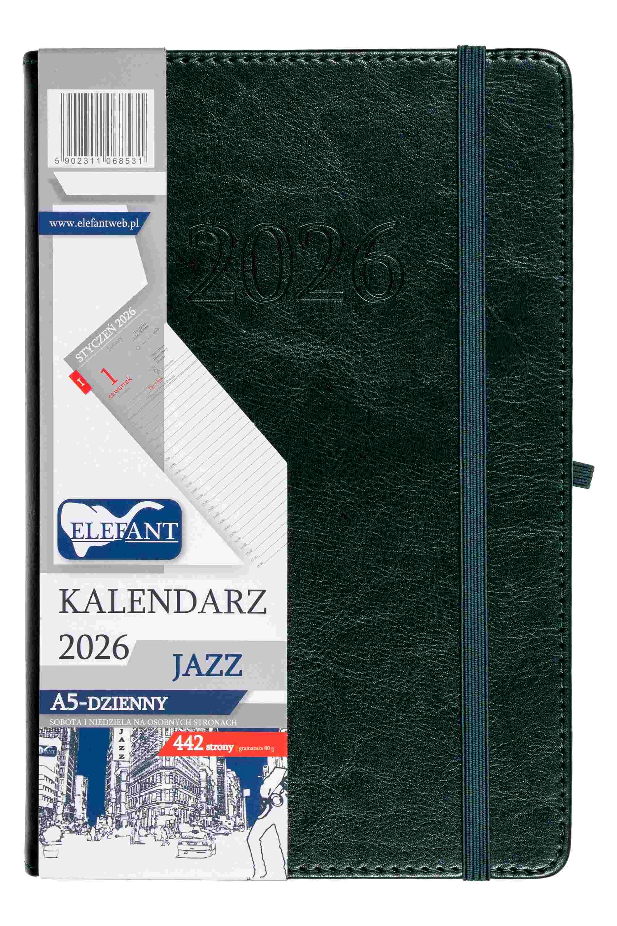 Kalendarz 2026 A5 dzienny Jazz zielony
