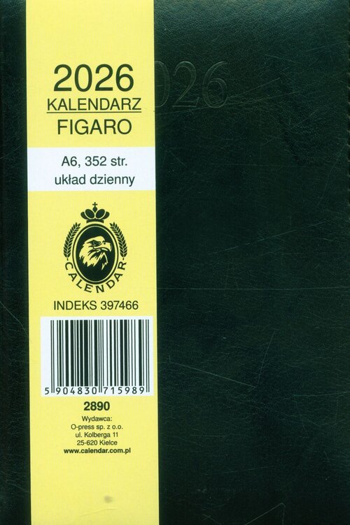 Opis produktuZasady bezpieczeństwa- Format A6 (105x148x9 mm) - Ilość stron: 352 - Dostępne kolory: czarny, granatowy, bordo, zielony, brąz - Oprawa: twarda skóropodobna + gąbka - Układ środka: dzień na stronie ( sobota niedziela na 1 stronie) - Wewnątrz tasiemka do oznaczania stron ułatwia odnajdywanie ważnych notatek lub ostatnio zapisanej strony - Papier: 70 g/m2 w kolorze ecru - Kalendarium: w języku polskim, angielskim, numeracja dni i tygodni, podwójne imieniny - Część informacyjna: strony na notatki, telefony kierunkowe, skorowidz alfabetyczny, daty imienin i Świąt.