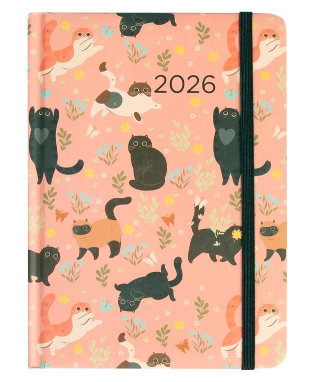 • wewnątrz: wstążka, plan roku 2026, notatnik, adresownik, linijka, kalendarium dodatkowe na 2026-2027