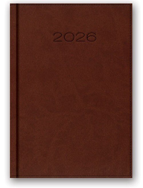 Kalendarz w układzie dziennym (1 dzień na stronie). Poręczny format B6 (blok: 11 x 16,5 cm), papier kremowy, druk szaro-bordowy, registry drukowane. Wstążka-zakładka; 336 stron; notes teleadresowy. Okleina skóropodobna.