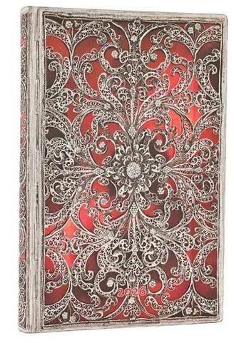 Opis produktuZasady bezpieczeństwaKalendarz ekskluzywnej marki Paperblanks, Okładka stanowi odwzorowanie filigranowej oprawy zaprojektowanej w Niemczech na początku XIX wieku, Format Mini typu Horizontal - cały tydzień rozplanowany na 2 stronach, Elastyczna oprawa i grzbiet, Kalendarium w języku angielskim, W środku miejsce na notatki, roczny planer, oznaczone wybrane święta międzynarodowe, mini kalendarium, międzynarodowe numery telefonów, strefy czasowe, skorowidz na adresy i telefony, Kalendarz posiada 2 satynowe wstążki jako zakładki, Na końcu po wewnętrznej stronie okładki jest koperta na drobne notatki, wizytówki czy paragony, Papier ekologiczny, bezkwasowy, gramatura 100, Wymiary 9,5 x 14 cm, 176 stron x