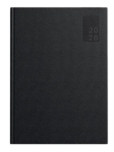 Szyty i klejony grzbiet brulionowy Twarda okładka z okleiną o skórzanej teksturze Układ: 1 dzień na stronie Rok: 2026 Format: A5 Czarny kolor okładki x