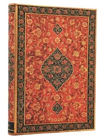 Opis produktuZasady bezpieczeństwaKalendarz ekskluzywnej marki Paperblanks, Okładka stanowi replikę oryginalnej XVIII-wiecznej oprawy poematu "Khamsa (Pięć Skarbów)" autorstwa perskiego poety Nizami'ego, Każdy dzień jest na osobnej stronie, soboty i niedziele są razem, Oprawa twarda, Kalendarium w języku angielskim, W środku miejsce na notatki, roczny planer, oznaczone wybrane święta międzynarodowe, mini kalendarium, międzynarodowe numery telefonów, strefy czasowe, Kalendarz posiada 2 satynowe wstążki jako zakładki, Na końcu po wewnętrznej stronie okładki jest koperta na drobne notatki, wizytówki czy paragony oraz oraz mini skorowidz na adresy i telefony, Papier ekologiczny, bezkwasowy, gramatura 80, Zamknięcie na gumkę, Wymiary 13 x 18 cm, 416 stron x