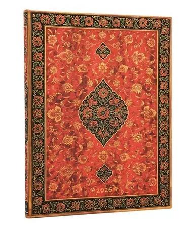 Opis produktuZasady bezpieczeństwaKalendarz ekskluzywnej marki Paperblanks, Okładka stanowi replikę oryginalnej XVIII-wiecznej oprawy poematu "Khamsa (Pięć Skarbów)" autorstwa perskiego poety Nizami'ego Format Ultra typu Vertical - cały tydzień rozplanowany jest na 2 stronach z podziałką godzinową, Oprawa twarda, Kalendarium w języku angielskim, W środku miejsce na notatki, roczny planer, oznaczone wybrane święta międzynarodowe, mini kalendarium, międzynarodowe numery telefonów, strefy czasowe, Kalendarz posiada 2 satynowe wstążki jako zakładki, Na końcu po wewnętrznej stronie okładki jest koperta na drobne notatki, wizytówki czy paragony oraz oraz mini skorowidz na adresy i telefony, Papier ekologiczny, bezkwasowy, gramatura 100, Zamknięcie na gumkę, Wymiary 23 x 18 cm, 160 stron x