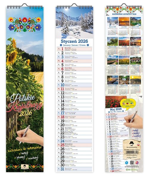 Kalendarz 2026 paskowy wąski polskie krajobrazy