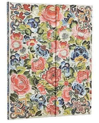 Opis produktuZasady bezpieczeństwaKalendarz ekskluzywnej marki Paperblanks, Okładka z reprodukcją materiału, z którego uszyta była haftowana spódnica, używana w Chinach podczas spektakli operowych, wystawianych pod rządami dynastii Qing (1644-1911), Format Ultra typu Vertical - cały tydzień rozplanowany jest na 2 stronach z podziałką godzinową, Oprawa twarda, Kalendarium w języku angielskim, W środku miejsce na notatki, roczny planer, oznaczone wybrane święta międzynarodowe, mini kalendarium, międzynarodowe numery telefonów, strefy czasowe, Kalendarz posiada 2 satynowe wstążki jako zakładki, Na końcu po wewnętrznej stronie okładki jest koperta na drobne notatki, wizytówki czy paragony oraz oraz mini skorowidz na adresy i telefony, Papier ekologiczny, bezkwasowy, gramatura 100, Zamknięcie na magnes, Wymiary 23 x 18 cm, 160 stron x