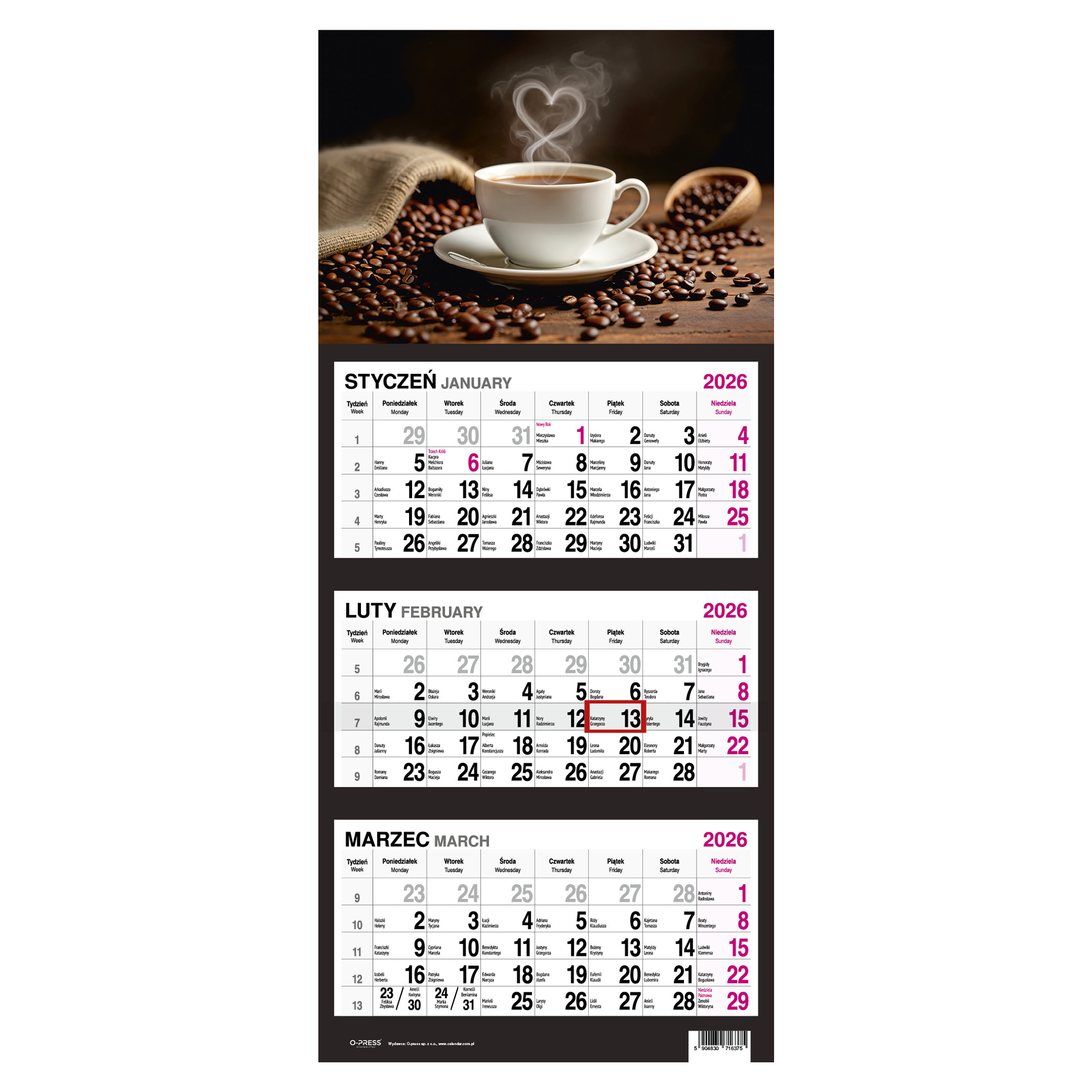 Kalendarz 2026 Trójdzielny Kawa