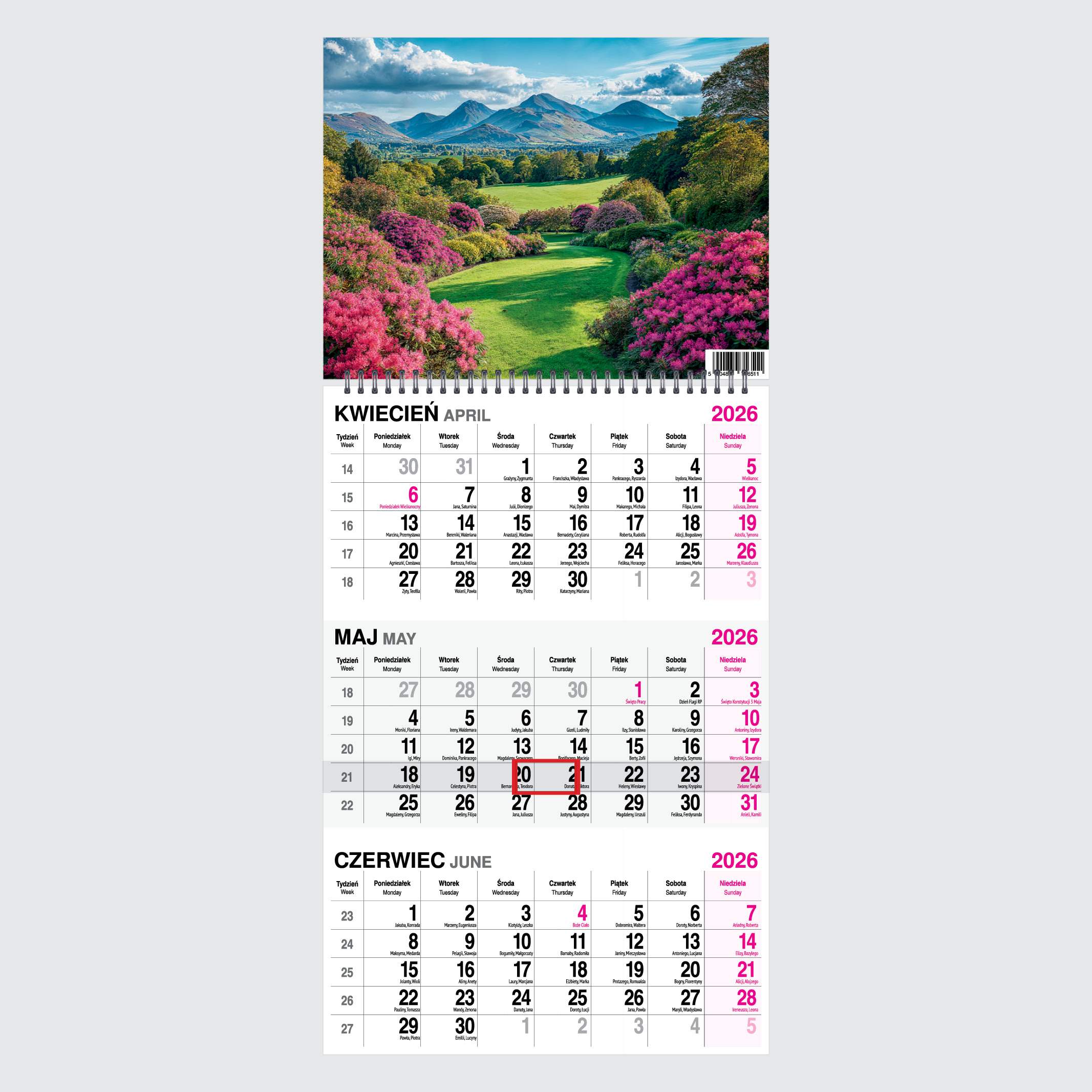 Kalendarz 2026 trójdzielny na spirali Ogród