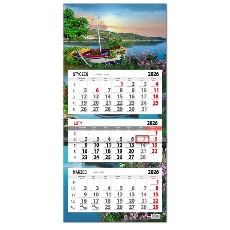Kalendarz 2026 trójdzielny płaska główka Łódka