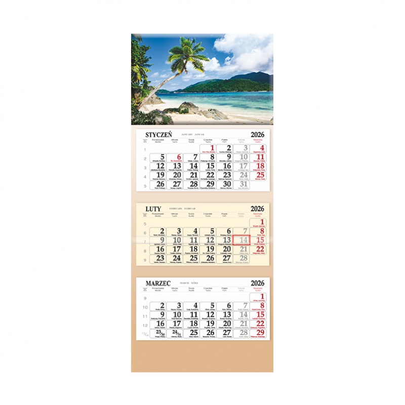 Kalendarz 2026 trójdzielny Plaża