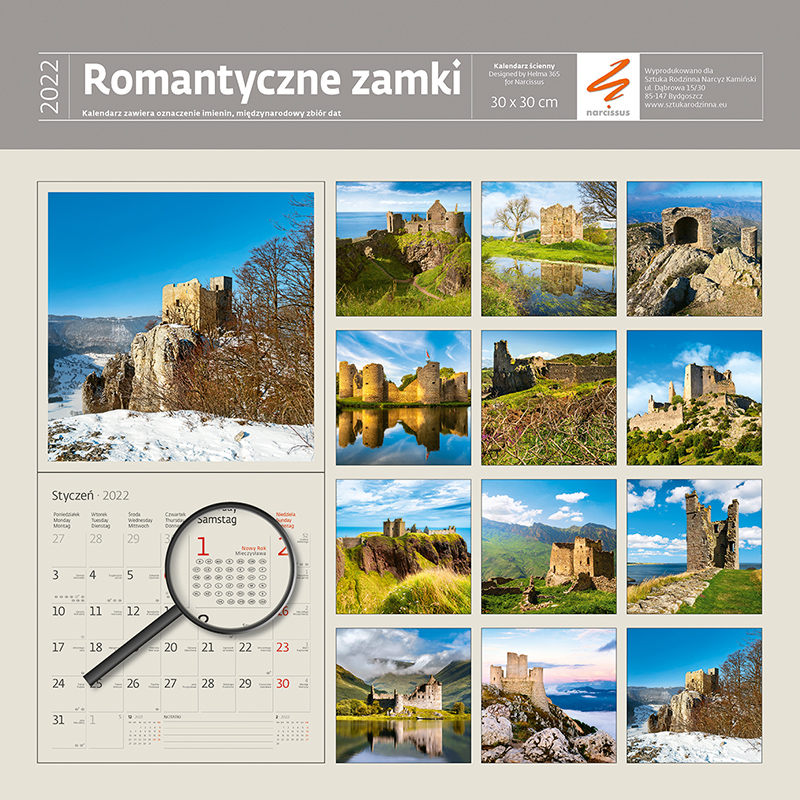 Kalendarz 30 x 30 z naklejkami. Romantyczne zamki 2022