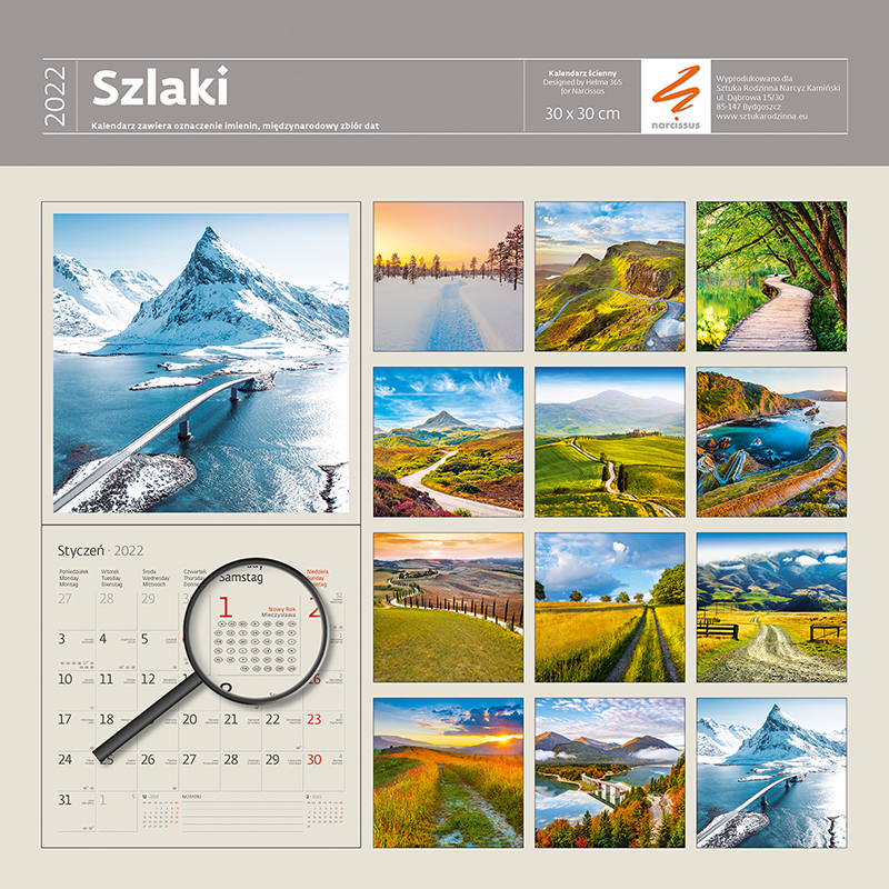 Kalendarz 30 x 30 z naklejkami. Szlaki 2022