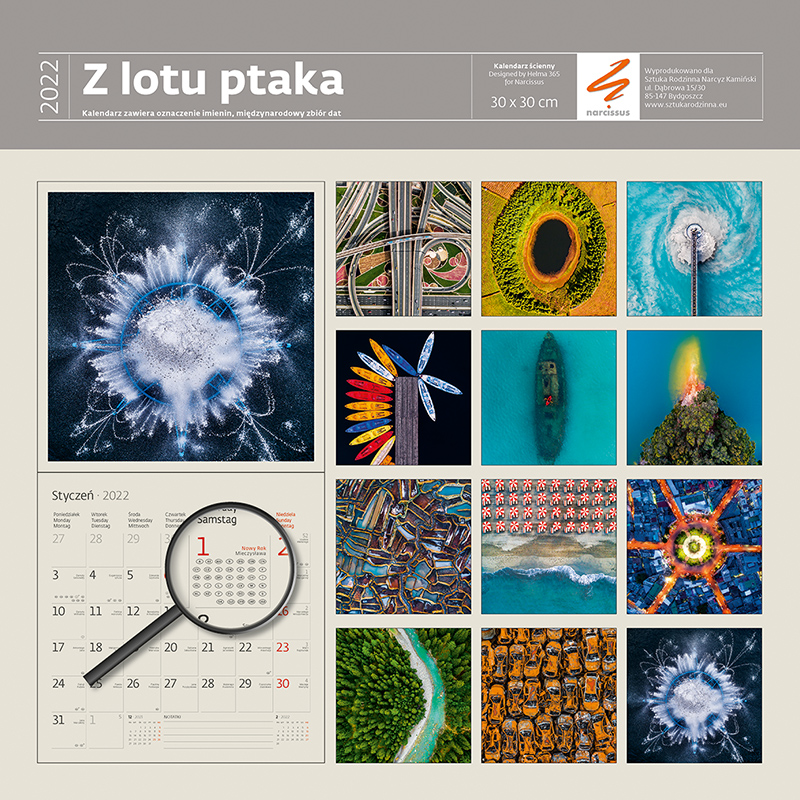 Kalendarz 30 x 30 z naklejkami. Z lotu ptaka 2022