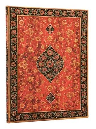 Opis produktuZasady bezpieczeństwaKalendarz ekskluzywnej marki Paperblanks, Okładka stanowi replikę oryginalnej XVIII-wiecznej oprawy poematu "Khamsa (Pięć Skarbów)" autorstwa perskiego poety Nizami'ego, Format Midi typu Verso - cały tydzień rozplanowany jest na 2 stronach, gdzie 7 dni tygodnia jest na jednej stronie a cała druga strona to miejsce na notatki, Oprawa twarda, Kalendarium w języku angielskim, W środku miejsce na notatki, roczny planer, oznaczone wybrane święta międzynarodowe, mini kalendarium, międzynarodowe numery telefonów, strefy czasowe, Kalendarz posiada 2 satynowe wstążki jako zakładki, Na końcu po wewnętrznej stronie okładki jest koperta na drobne notatki, wizytówki czy paragony oraz oraz mini skorowidz na adresy i telefony, Papier ekologiczny, bezkwasowy, gramatura 100, Zamknięcie na gumkę, Wymiary 23 x 18 cm, 160 stron x