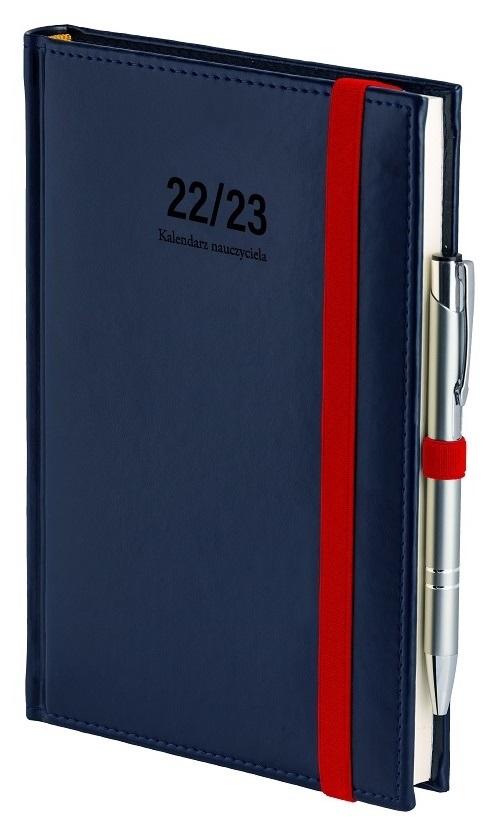 Kalendarz A5 nauczyciela w oprawie Nebraska z gumką. Każdy dzień na osobnej stronie, sobota i niedziela razem. 368 stron. Papier biały. Format bloku 143x204 mm. Druk szaro- bordowy. Kalendarium od 11.07.22 do 03.09.23 r. Rozbudowana część informacyjna przydatna przy w pracy nauczyciela. Długopis za dodatkową opłatą.