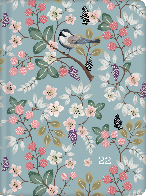 12,5 x 17 x 1,5 cm, układ tygodniowy, wewnątrz: plan roku 2022, notatnik, adresownik, linijka, kalendarium dodatkowe na 2023-2030