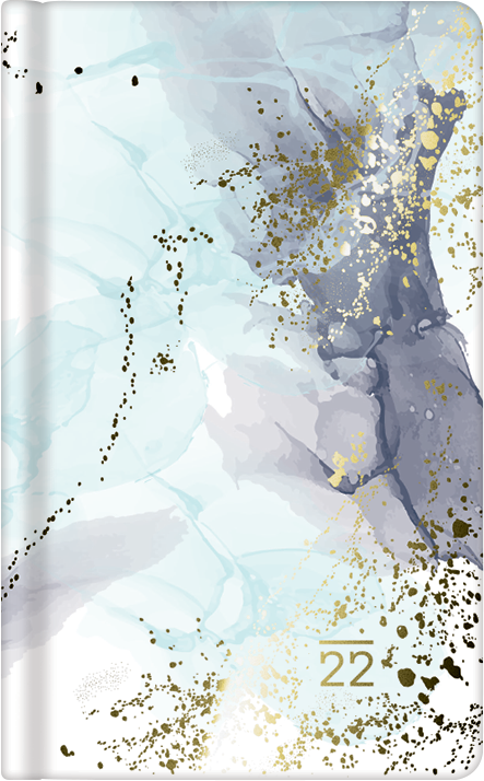 9,5 x 15,5 x 1,5 cm, układ tygodniowy, wewnątrz: plan roku 2022, notatnik, adresownik, linijka, kalendarium dodatkowe na 2023-2032