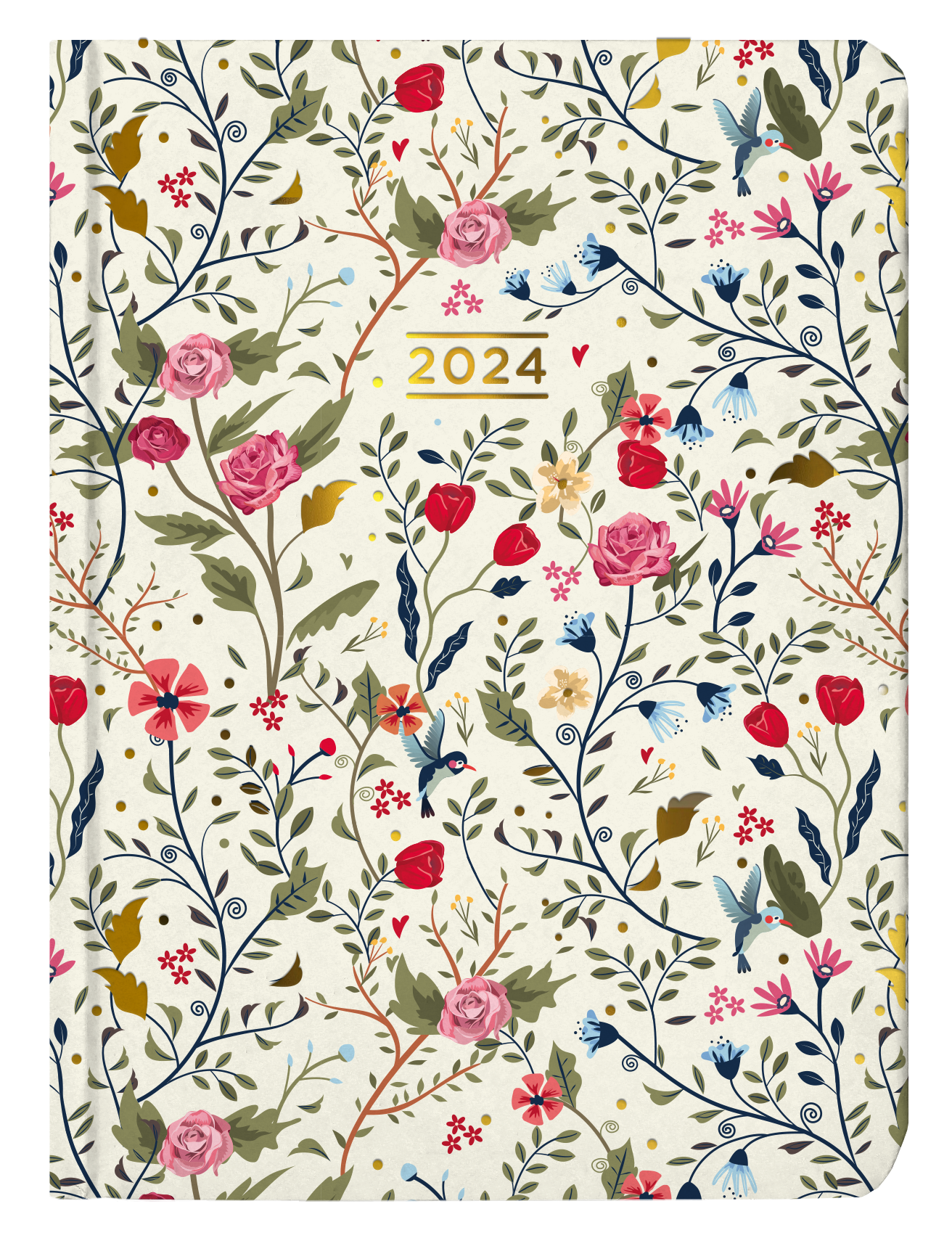 Kalendarz tygodniowy 2024 B6 Biały w kwiaty ALBI
