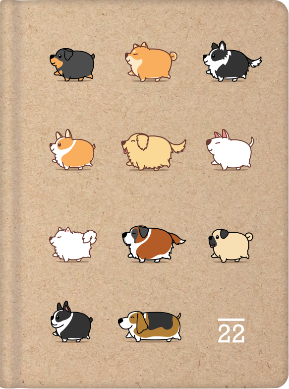 12,5 x 17 x 1,5 cm, układ tygodniowy, wewnątrz: plan roku 2022, notatnik, adresownik, linijka, kalendarium dodatkowe na 2023-2024