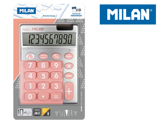 Kalkulator 10 pozycyjny Silver różowy, przejrzysty ekran, automatyczne włączanie.