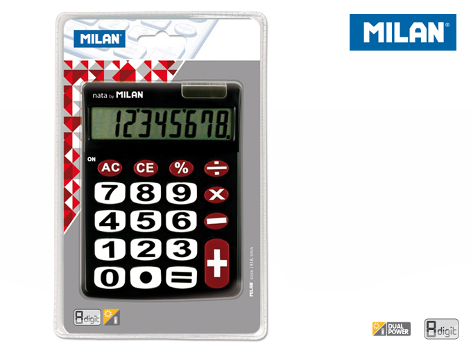 Kalkulator 8 pozycyjny z bardzo dużymi klawiszami, plastikowe klawisze, podwójne zasilanie: bateria 1,5V oraz bateria słoneczna. Idealny dla osób starszych i słabowidzących