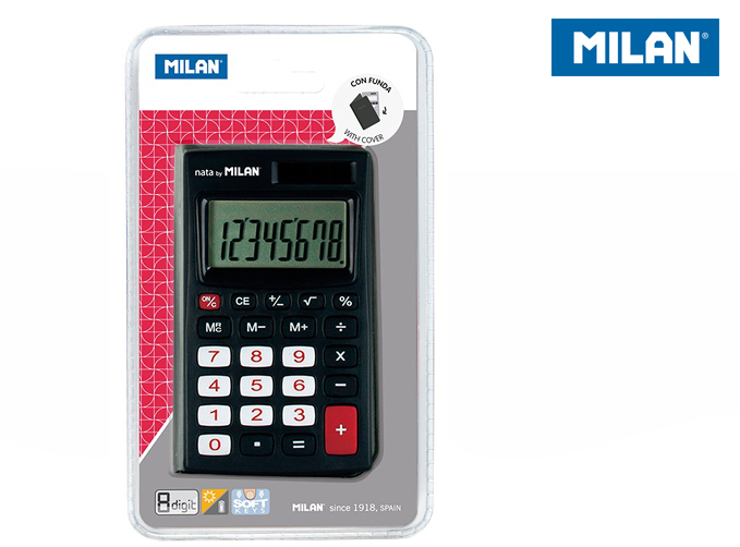8 pozycyjny wyświetlacz, 3 klawisze pamięci, klawisz zmiany znaku +/-, plastikowy panel, miękkie gumowe przyciski, podwójne zasilanie: bateria 1,5V oraz bateria słoneczna.