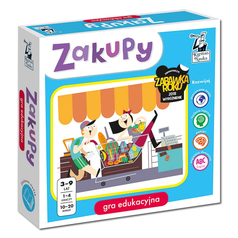 Aż 12 wariantów rozgrywki oraz proste zasady zaangażują zarówno przedszkolaków, jaki i dzieci w wieku szkolnym, trenując przy tym pamięć, koncentrację i spostrzegawczość. Bogata zawartość pakietu (m.in. koszyki zakupowe, listy produktów z różnych sklepów oraz 48 żetonów z artykułami z ośmiu sklepów) wprowadza w świat codziennych zakupów, uczy planowania i podejmowania decyzji oraz wspiera wszechstronny rozwój dzieci.