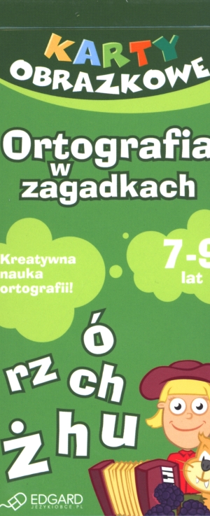 Karty obrazkowe Ortografia w zagadkach:- uczą ortografii poprzez zabawę- rozwijają spostrzegawczość i pamięć wzrokową- poszerzają wiedzę ogólną dziecka- rozbudowują zasób słownictwa