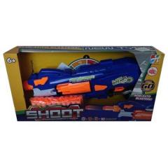 Plastikowy karabin na miękkie strzałki, z magazynkiem bębenkowym.