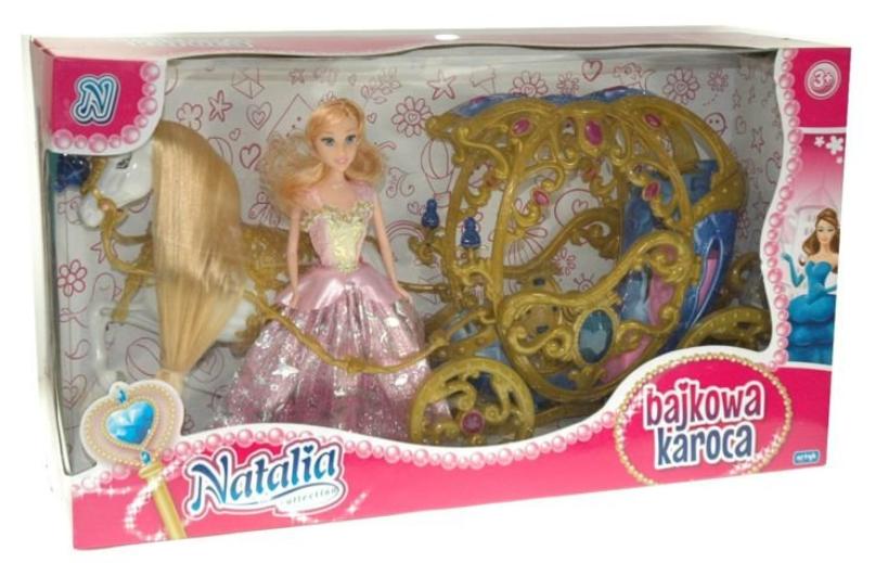Bajkowa karoca w złotym kolorze z lalką Natalią w pięknej balowej sukni
