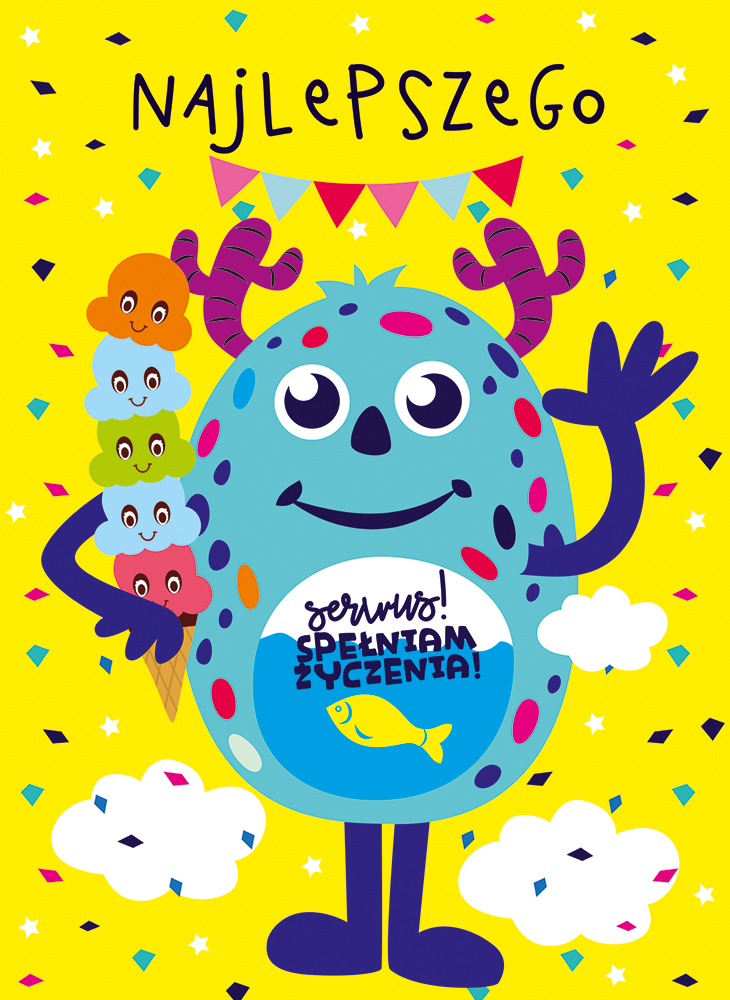Karnet w formacie 12x 16,5 cm, uszlachetniony folią matową i lakierem UV, kolorowa koperta, wkładka z życzeniami w środku