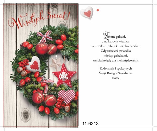 Ozdobny zamykany karnet z życzeniami na Boże Narodzenie.