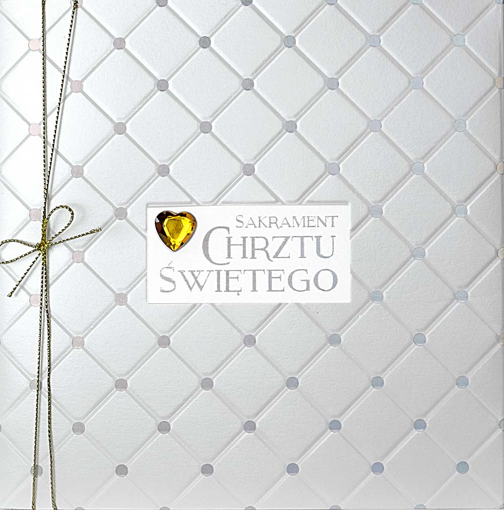 Opis produktuZasady bezpieczeństwaKartki z serii Primus, to kartki najwyższej jakości, pięknie zdobione m.in złotą lub srebrną folią, tłoczeniami, czy wycinkami laserowymi. Idealne na najważniejsze okazje w życiu, takie jak chrzest, komunia. W środku każdej kartki znajdują się dobrane do okazji życzenia, a do kartki dołączona jest dopasowana koperta. Cechy szczególne: wielkość: niestandardowa, prostokątna, kwadratowa, zdobienia: dekoracje ze złotej folii, doklejane koraliki, tłoczenia koperta: dopasowana w komplecie, wnętrze kartki: życzenia w środku, okazja: Chrzest Święty x