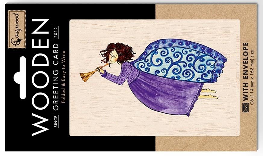 Karnet drewniany C6 + koperta Anioł z trąbką