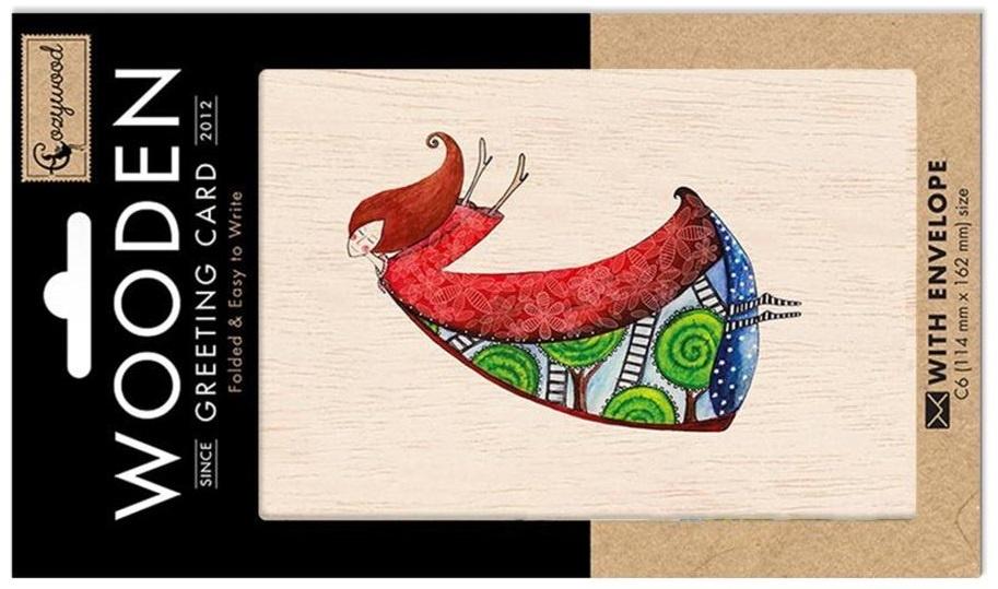 Karnet drewniany C6 + koperta Kobieta w czerwonej