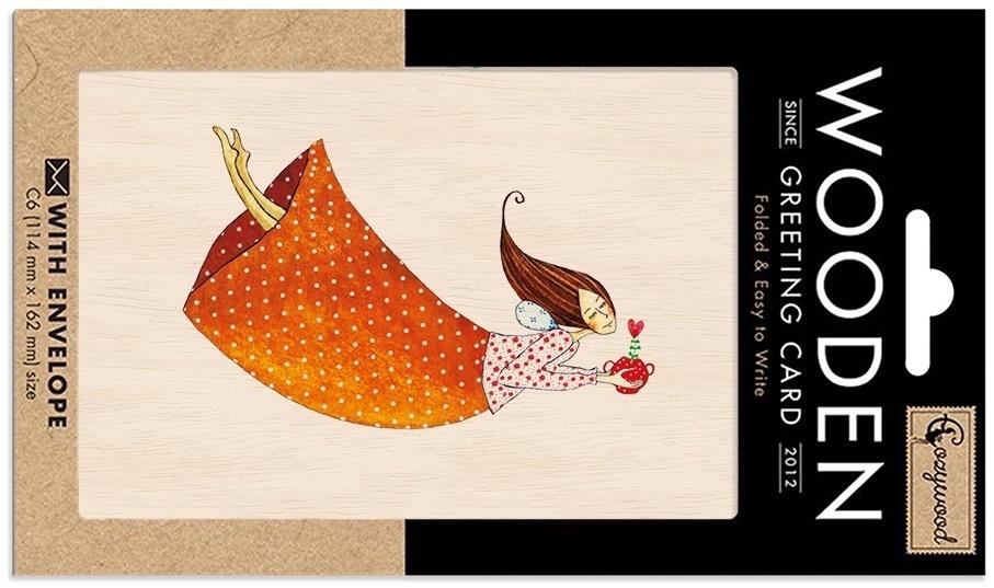 Karnet drewniany C6 + koperta Kobieta w sukience