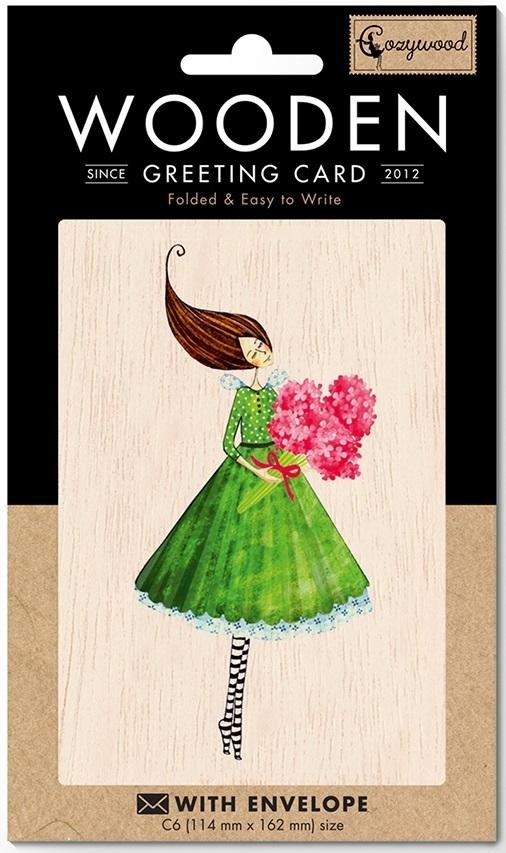 Karnet drewniany C6 + koperta Kobieta z bukietem